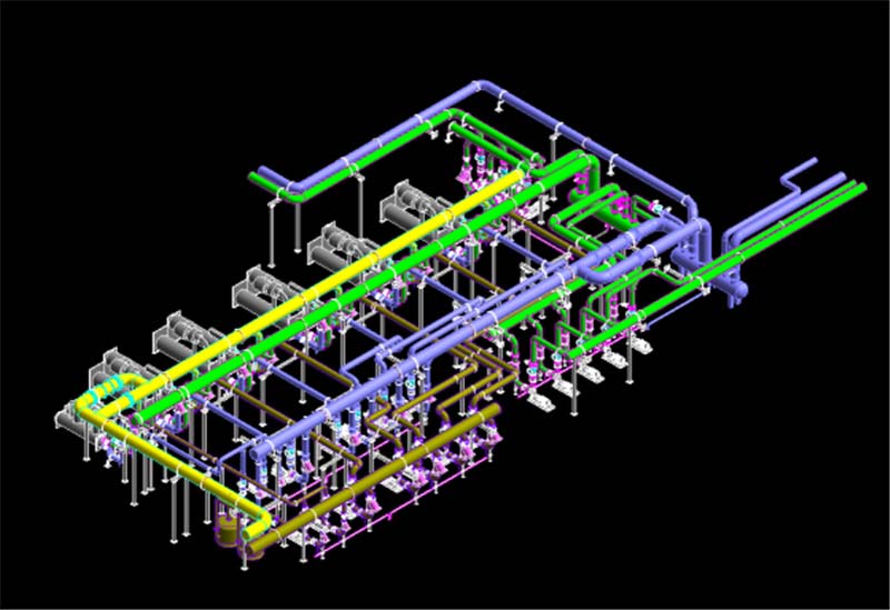 華為電氣園位于深圳華為基地,因大樓的整體改建,建筑面積擴(kuò)增,原有空調(diào)水冷機(jī)房需重新設(shè)計(jì)、制造、安裝。由于原機(jī)房施工空間狹小,機(jī)房容量不到三千冷噸,現(xiàn)有增至5000冷噸,而主機(jī)管道附件設(shè)計(jì)安裝在空調(diào)主機(jī)出水橫管上,橫管占用空間大,且工期緊,給項(xiàng)目的整體配套落地帶來(lái)新的挑戰(zhàn)。
