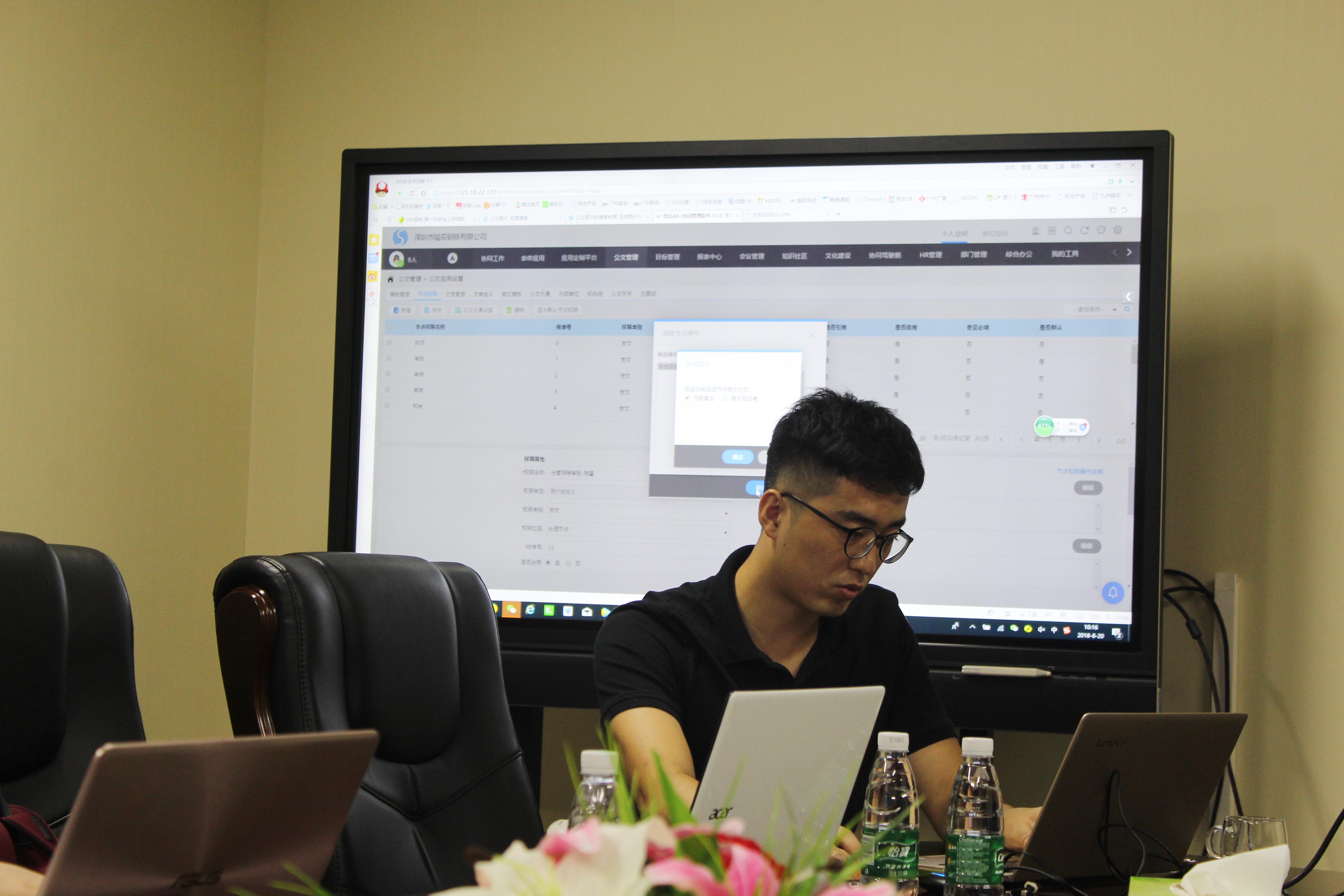 根據(jù)集團(tuán)OA系統(tǒng)上線的時(shí)間安排及培訓(xùn)要求,我公司對(duì)全體OA系統(tǒng)管理人員在2018年8月6日至22日進(jìn)行了為期11天的OA系統(tǒng)操作培訓(xùn)。凱聯(lián)方兩位負(fù)責(zé)人對(duì)我公司全體參訓(xùn)人員進(jìn)行系統(tǒng)運(yùn)行的全面講解,詳細(xì)介紹了OA辦公系統(tǒng),講解系統(tǒng)的登錄、協(xié)同工作、CAP4業(yè)務(wù)生成器、知識(shí)社區(qū)、綜合辦公應(yīng)用等并逐一進(jìn)行演示。在培訓(xùn)過程中,凱聯(lián)方人員就OA系統(tǒng)操作與全體參訓(xùn)人員進(jìn)行了充分交流并解答同事們提出的各種問題。這次培訓(xùn)針對(duì)全體系統(tǒng)管理人員采取了培訓(xùn)考核并逐一檢查的方式,確保參訓(xùn)人員真正掌握OA系統(tǒng)操作,確保系統(tǒng)于9月份開始陸續(xù)實(shí)施的計(jì)劃順利進(jìn)行。
