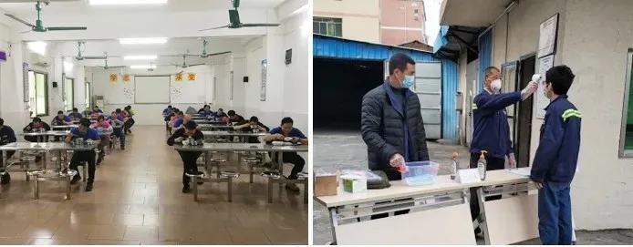 東莞智造自2月初起,積極配合政府部門整理工廠人員的資料調(diào)查工作,通過逐個電話溝通了解所有在職員工在莞信息、離莞信息、湖北接觸史、身體健康等相關情況。同時,搜集疫情防控政策,搶購復工所需防護用品,配合接待政府多個部門的下廠檢查,積極整改提出問題。最終按照政府部門的指引,于2020年2月16日收到村委及鎮(zhèn)府同意復工的通知。
