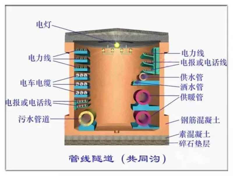 城市地下綜合管廊是指設(shè)置于地面下可容納包括電力、電信、供水、煤氣、交通信號、閉路電視等兩種以上的公共設(shè)施管線,并擁有完備的排水、照明、通訊、監(jiān)控等設(shè)施功能的地下箱涵隧道。國內(nèi)已建和規(guī)劃要建的綜合管廊無論是其設(shè)計(jì)標(biāo)準(zhǔn)和設(shè)計(jì)規(guī)范還是其結(jié)構(gòu)形式和功能布置都是參照日本的“共同溝”模式來建設(shè)的。